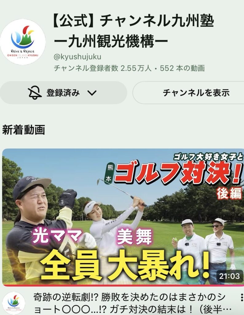九州観光機構のチャンネル九州塾のゴルフ対決企画で、GRGCでのプレーの模様が、ユーチューブにてアップされました。