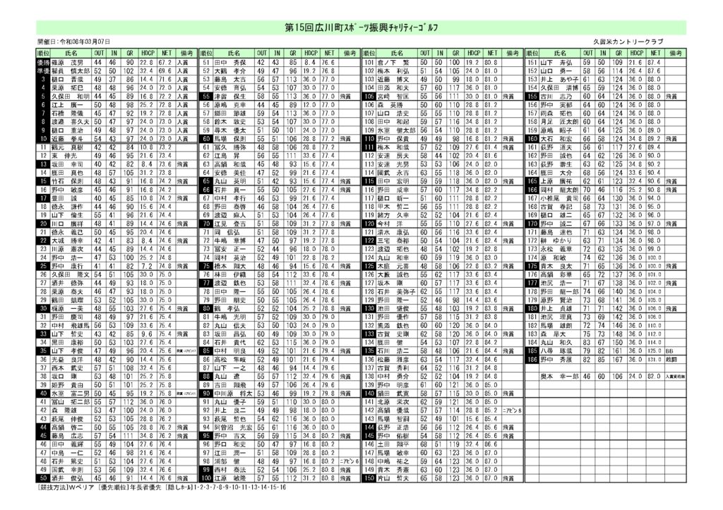 2026年3月7日 / 最終更新日時 : 2026年3月7日 久留米CCスタッフ 最新情報 第15回広川町スポーツ振興チャリティーゴルフ 3/7(土)に開催されました 【第15回広川町スポーツ振興チャリティーゴルフ】成績表です たくさんのご来場ありがとうございました♪