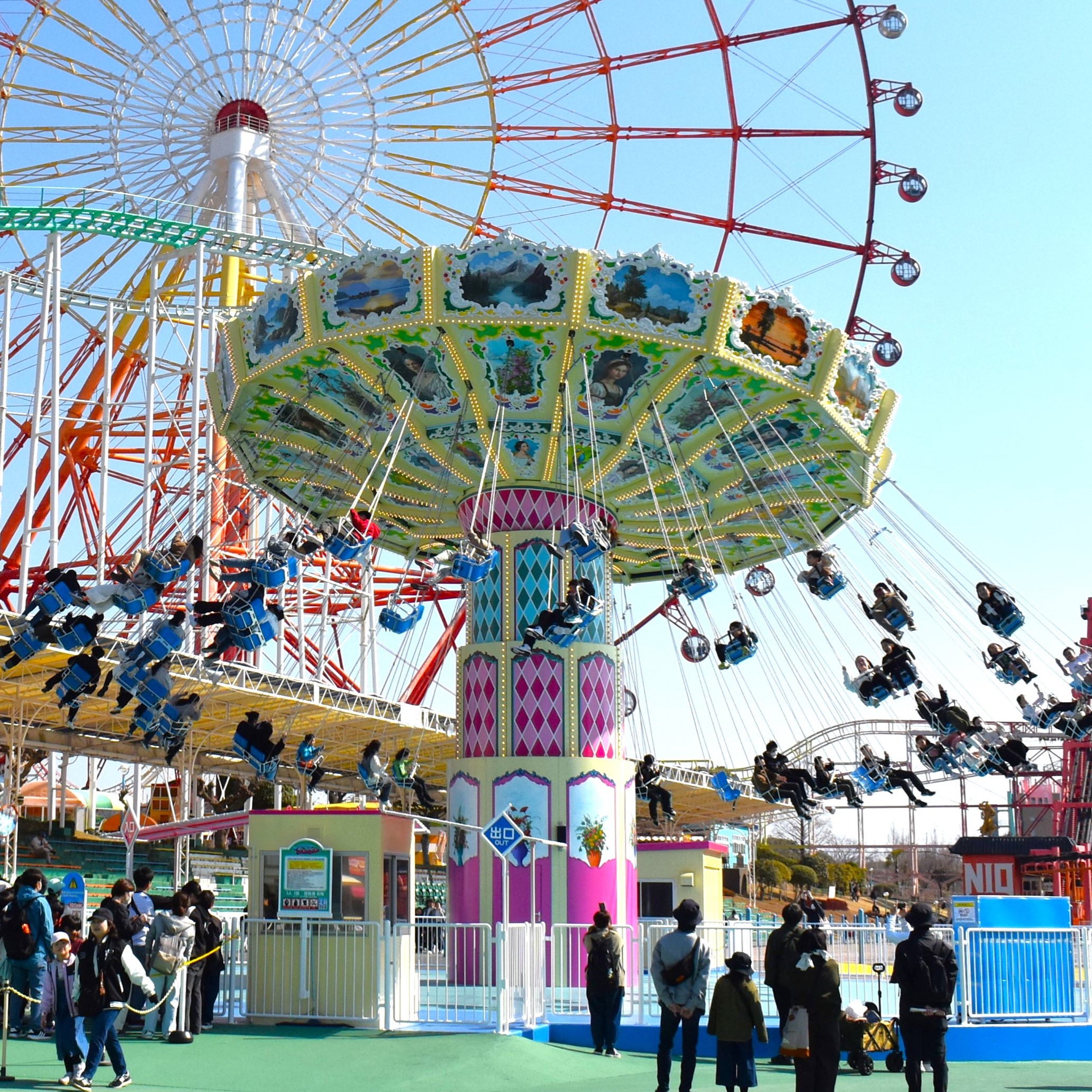 遊園地の定番といえばこれ、空中ブランコ。絶叫マシン好きな人にもちょっと苦手な人にも大人気!