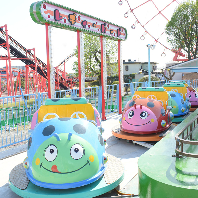 見た目がかわいいからといって、なめてはいけません!細いレールの上を、4人乗りのライドが独自に回転しながら疾走します。正に、コーヒーカップがレールの上をはしるような複合的な恐怖!終わった後、へらへらという変な笑いがでます。名作。