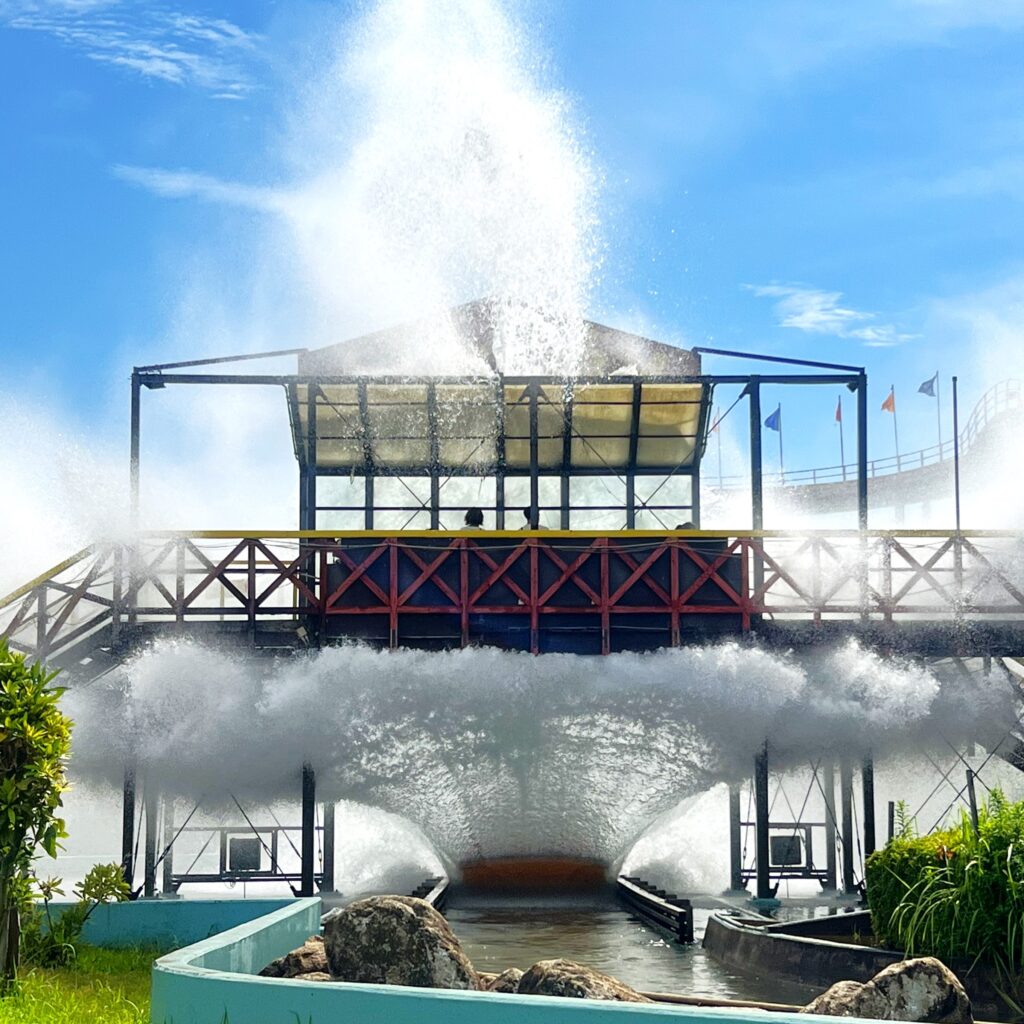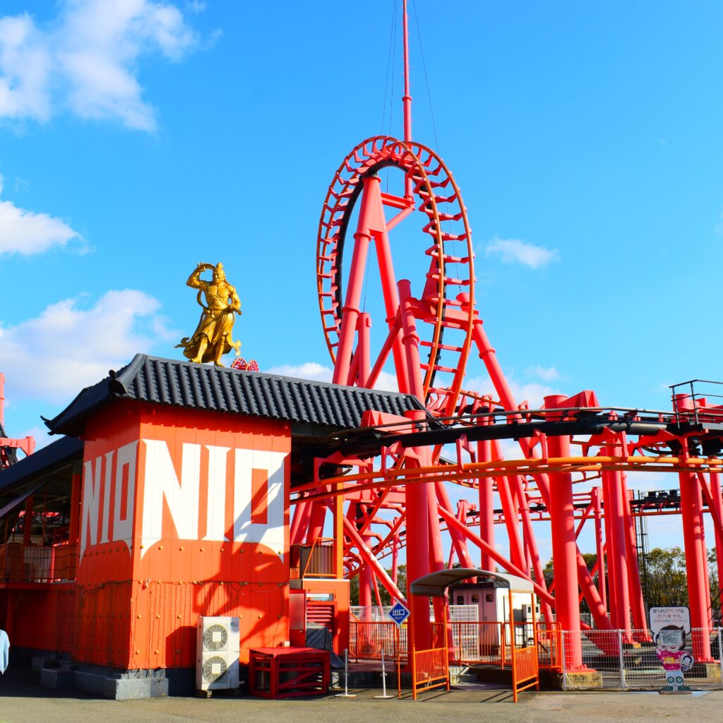 グリーンランドが誇る「サスペンディッドルーピングコースター」。その形状が屈強の守護神「仁王様」がまとう「羽衣」に似ていることから、その名が付けられた!スキーリフトのように、足がぶらぶらの状態から、2回宙返り&3回スクリュー回転をおみまいしてくれる、最強コースター「二オー」は、九州では、グリーンランドにしかありません!!