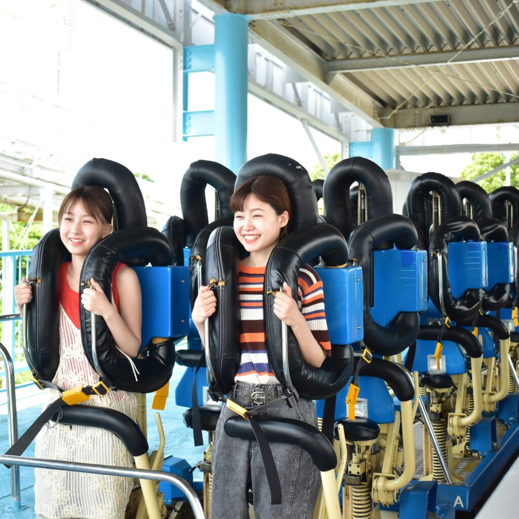 「立って乗る」国内でも珍しいローラーコースター!夏空に輝く「天の川」のきらめき、織姫様(女性)と彦星様(男性)の素敵な出会いが生まれる心ときめく、ミルキーウェイのようなアトラクションになればとの願いから名づけました。
