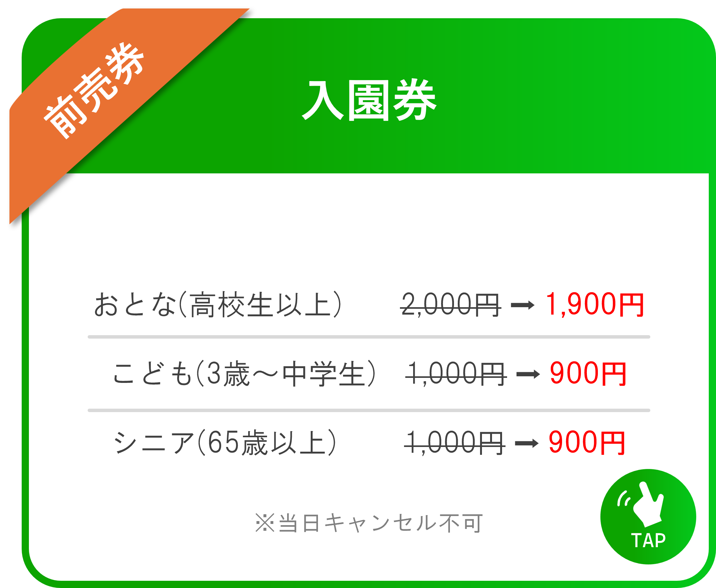 アソビュ―よりメールでQRコードが送られてきますので、ご入園口でご提示ください。※メールが開けない場合はアソビュ―マイページよりご提示いただけます。